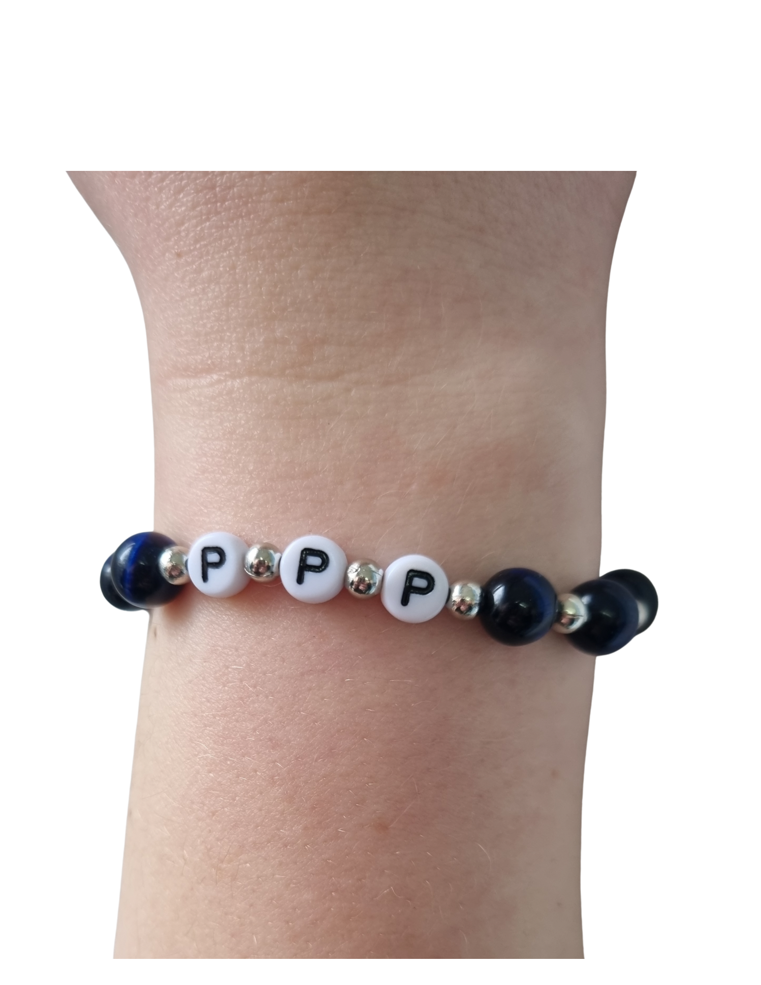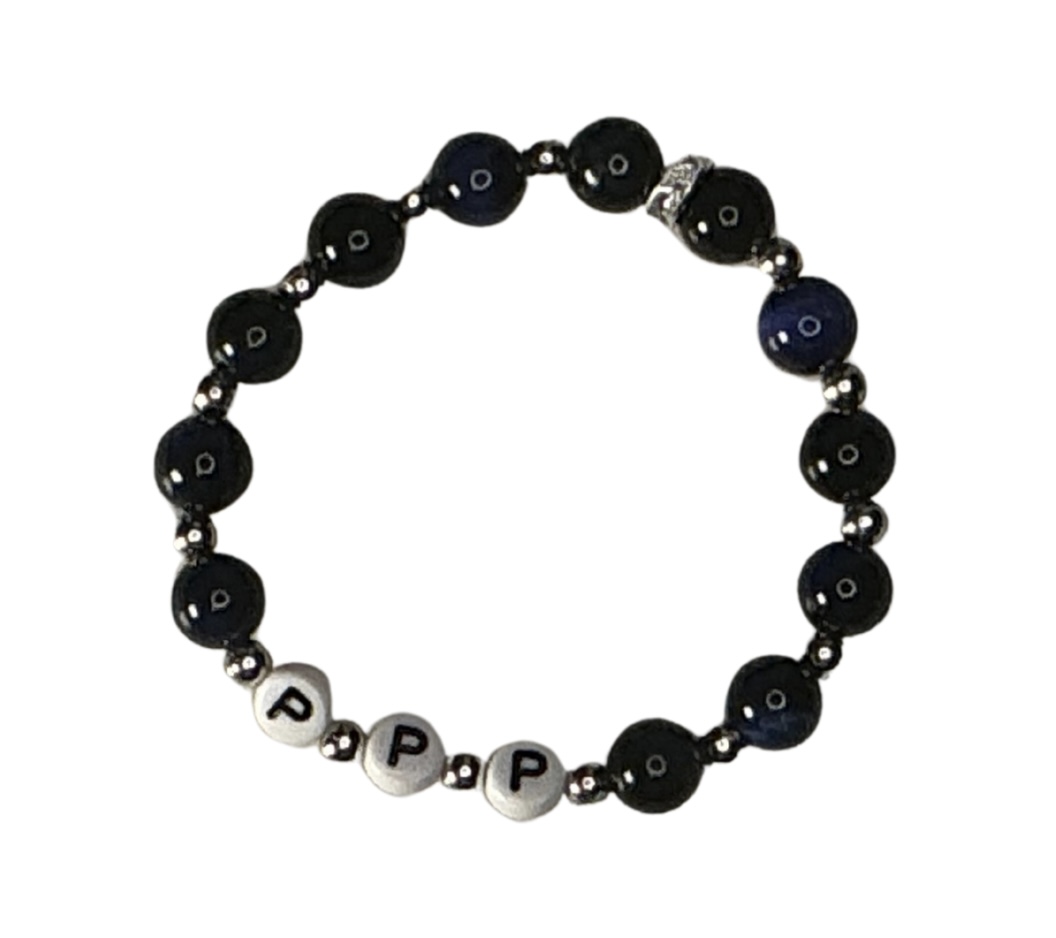 Armband mit Lapislazuli-Steinen und PPP-Schriftzug, 18,5 cm
