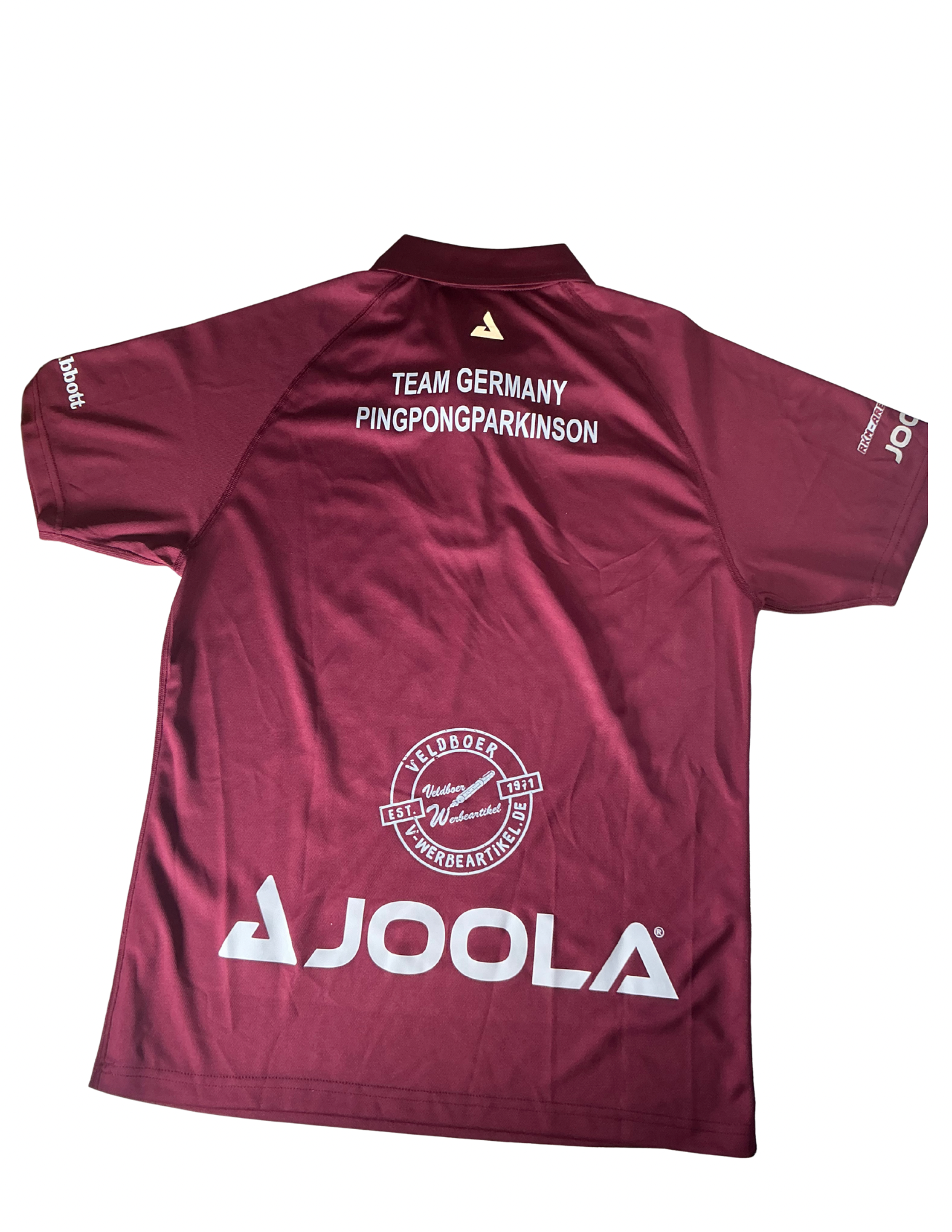 Zeigen Sie Ihre Unterstützung für die PingPongParkinson-Community mit unserem qualitativ hochwertigen Vereinstrikot von Joola. JOOLA Trikot Team Germany Weltmeisterschaft Polo Airform in bordeaux